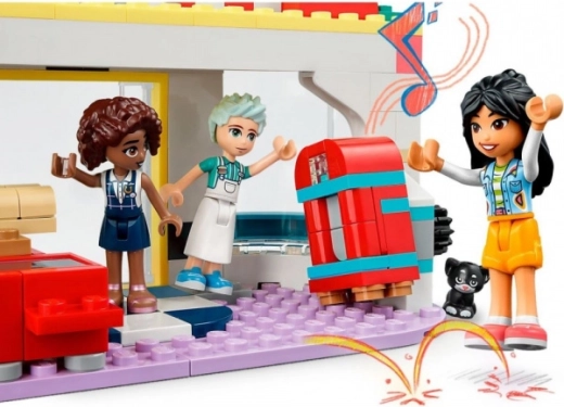 Odkryj nowoczesne bistro w sercu Heartlake, gdzie wyobraźnia staje się rzeczywistością. Dzieci mogą przygotowywać pyszne kanapki, przyjmować zamówienia przy drive‑thru, bawić się przy automacie i rozkręcić zabawę przy ruchomym jukeboxie. Dzięki bogatym akcesoriom zabawa jest płynna i pełna pomysłów.