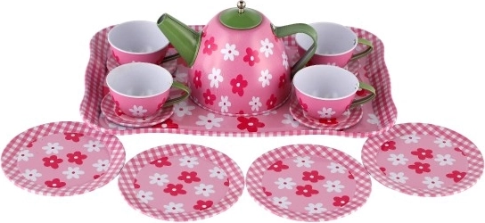 W opakowaniu znajdziesz wszystko, co potrzebne do małej herbatki – czajniczek, filiżanki ze spodkami oraz talerzyki. Zestaw świetnie wspiera rozwój umiejętności społecznych, naukę zasad nakrywania do stołu oraz wspólną zabawę z przyjaciółmi. Naczynia nie są przeznaczone do rzeczywistego przygotowywania ani spożywania napojów.