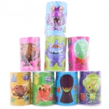 Blaszana skarbonka z motywem potworków o wymiarach ok. 15 × 10 cm. Pakowana w woreczek. Skarbonka nie ma otwierania. Wiek 3+