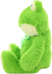 Ta duża pluszowa żaba zachwyca miękkością i przyjemnym materiałem, który zachęca do przytulania. Dzięki przyjaznemu wyrazowi i subtelnej kokardce stanie się ulubioną zabawką oraz miłą dekoracją. Idealna dla niemowląt, przedszkolaków i starszych dzieci.