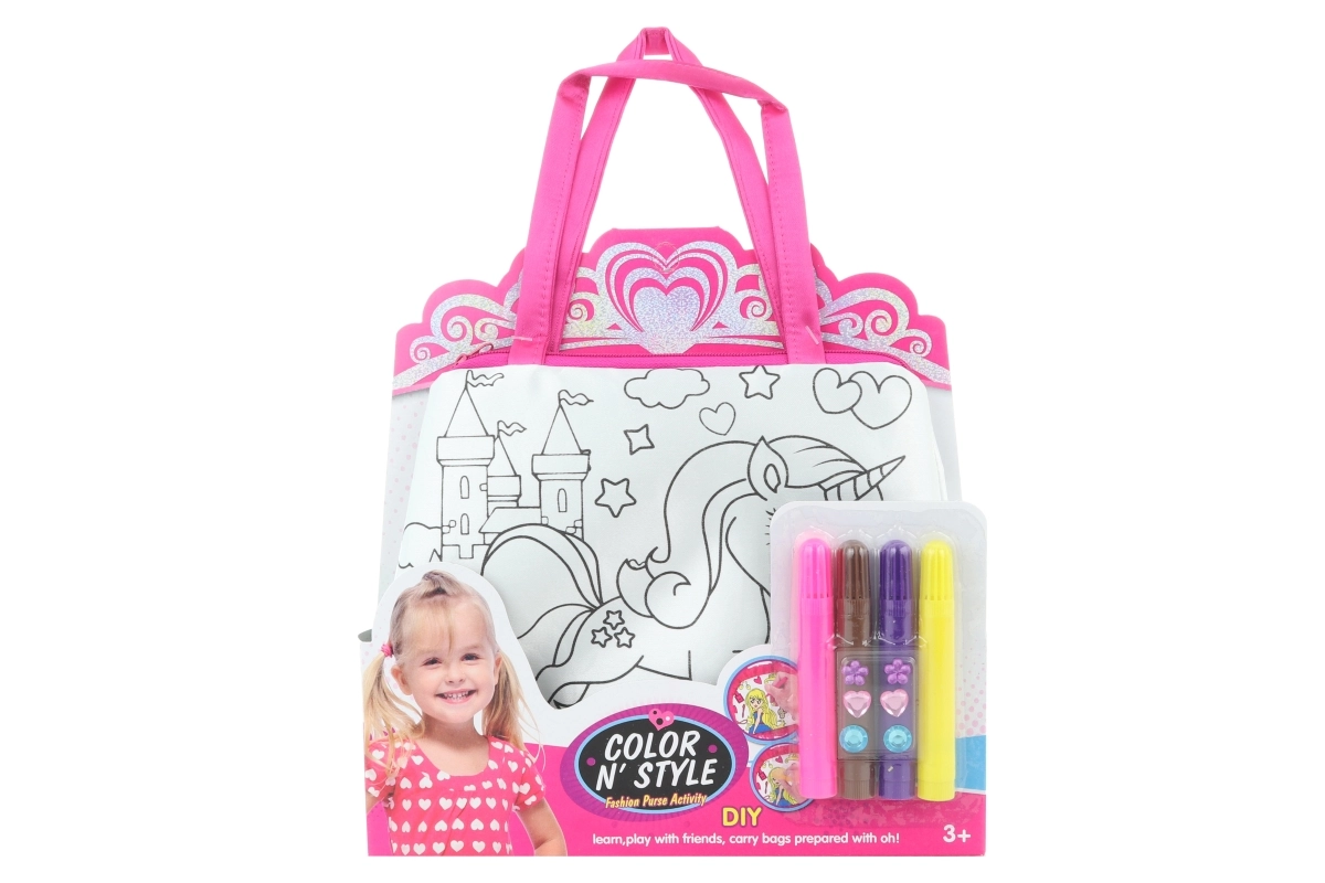 Wspieraj dziecięcą wyobraźnię dzięki oryginalnej torebce do kolorowania z jednorożcem. Dzięki specjalnym pisakom do tkanin i dołączonym kryształkom dzieci stworzą własny stylowy dodatek, który z dumą mogą nosić na co dzień.