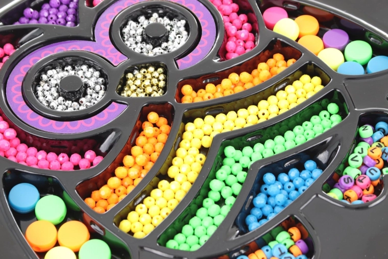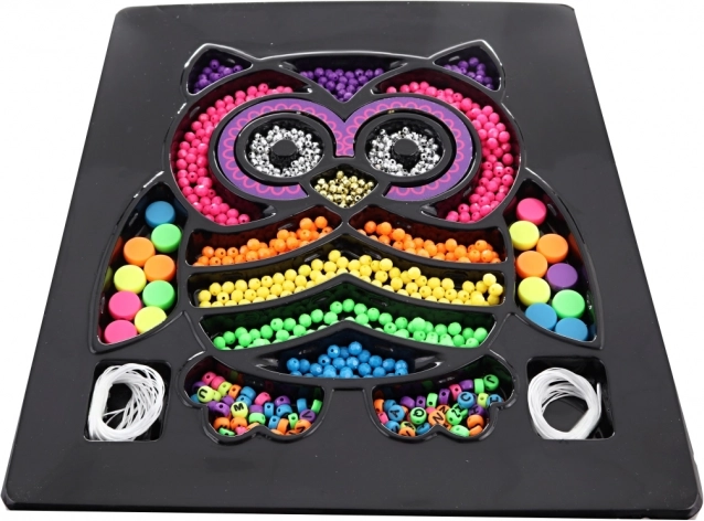 Organizer w kształcie sówki przejrzyście rozdziela kolory i typy koralików, dzięki czemu tworzenie jest łatwe i uporządkowane. Elastyczne sznurki zapewniają wygodne nawlekanie i przyjemne noszenie gotowych ozdób. Zestaw rozwija kreatywność, cierpliwość i motorykę małą dzieci.