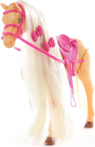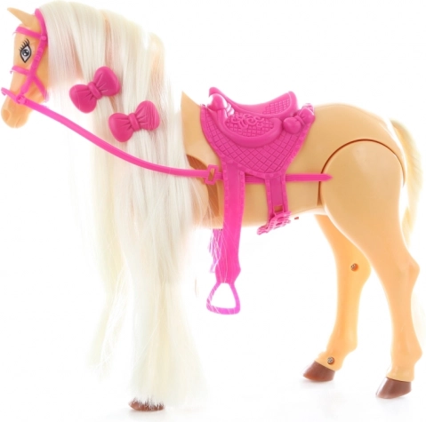 Elektryczny koń wydaje autentyczne odgłosy galopu i rżenia, które zachwycą każdego małego miłośnika jazdy konnej.