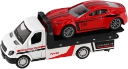 Mały, ale wydajny holownik z autkiem ucieszy każdego małego kierowcę. Dzięki mechanizmowi pull-back pojazdy ruszają żwawo, metalowo–plastikowe wykonanie gwarantuje trwałość i dopracowane detale, a kompaktowa długość 11 cm jest idealna do zabawy w domu i w podróży.