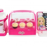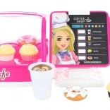Ciesz się zabawą z dużą dziecięcą kawiarnią, która oferuje ekspres do kawy, lodówkę z ciasteczkami i kasę, wszystko na baterie.