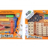 Plastowy zestaw narzędzi jest idealny dla małych majsterkowiczów. Zawiera młotek, szczypce, śrubokręt, klucz, nóż oraz inne akcesoria, które pomagają dzieciom rozwijać zdolności motoryczne podczas zabawy.