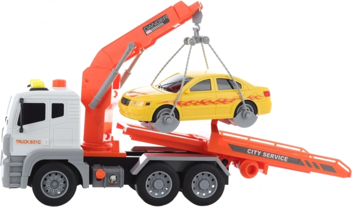 Ta wytrzymała laweta zapewnia dzieciom autentyczne doświadczenie pracy służb miejskich. Po naciśnięciu zintegrowanych przycisków włączają się światła i rozbrzmiewają realistyczne dźwięki, które wspierają wyobraźnię i rozwijają percepcję sensoryczną.