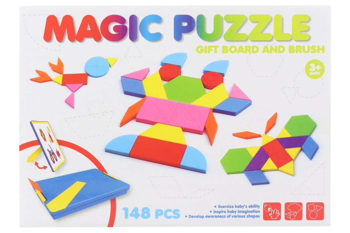 Odkryj kreatywną zabawę dla dzieci i dorosłych z tym praktycznym zestawem. Magnetyczne piankowe tangramy w wytrzymałym plastikowym pudełku zawierają 148 elementów i są idealne do rozwijania wyobraźni, motoryki małej oraz logicznego myślenia. Świetne w podróży i w domu, odpowiednie dla dzieci od 3 lat.