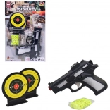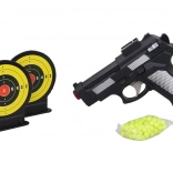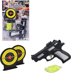 Ten pistolet na kulki to idealna zabawka dla małych strzelców, którzy lubią ćwiczyć swoją celność. Dzięki dwóm dołączonym tarczom dzieci mogą rywalizować z kolegami lub poprawiać umiejętności samodzielnie. Lekka i łatwa w obsłudze konstrukcja z plastiku sprzyja bezpiecznej i wesołej zabawie.