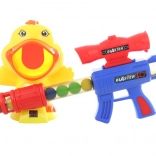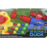 Ten kolorowy pistolet pozwala strzelać piankowymi kulkami prosto do pyska kaczki, co zapewnia godziny zabawy.
