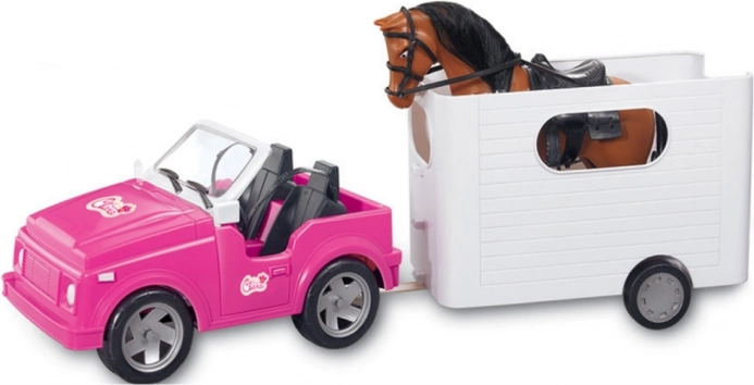 Odkryj kompletny zestaw do kreatywnej zabawy: samochód dla lalek z przyczepą i koniem. Dzięki dużym rozmiarom i wytrzymałemu plastikowi zestaw nadaje się do codziennego użytku w domu i na zewnątrz. Dzieci mogą łatwo załadować konika, wyruszyć na zawody lub na wycieczkę, rozwijając wyobraźnię i małą motorykę.