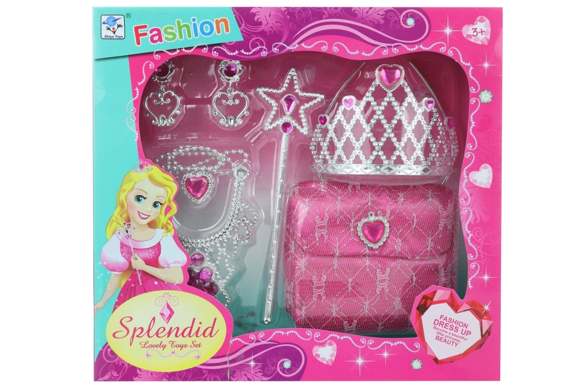 Zestaw piękności dla małych księżniczek zawiera torebkę o wymiarach ok. 13 x 12 cm, koronę, berło, naszyjnik i kolczyki. Wymiary opakowania ok. 30,5 x 28 x 6 cm. Wiek 3+