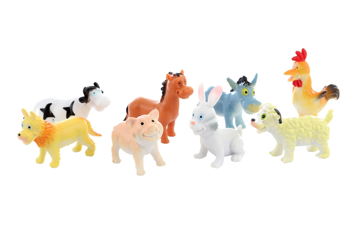- świnia, baran, koń, krowa, osioł, kogut, pies i królik