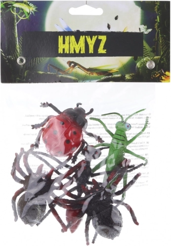 Zestaw plastikowych owadów 5 szt.: biedronka, pasikonik, mrówka i 2 pająki. Realistyczne figurki ok. 6 cm, opakowanie 15×23×5 cm. Dla dzieci od 3 lat.