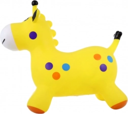 Wesoła żółta żyrafa z kolorowymi kropkami zachęca do ruchu i zamienia każde skakanie w radosną zabawę.