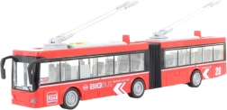 Ten czerwony przegubowy trolejbus zapewni dzieciom godziny zabawy dzięki realistycznym dźwiękom i światłom. Wykonany z wysokiej jakości plastiku i zasilany trzema bateriami AG13, które są dołączone do zestawu.