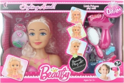 - Głowa do czesania, suszarka na baterie, grzebień, spinki i inne dodatki