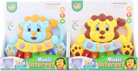 Plastowe pianinko w kształcie lwiątka, które gra i wydaje dźwięki zwierzątek. Idealna zabawka dla małych dzieci od 12 miesięcy.
