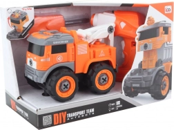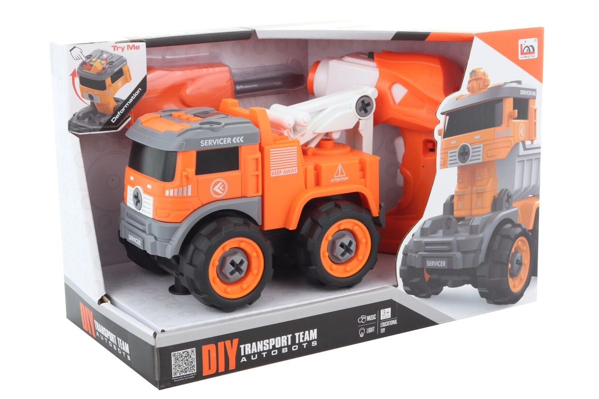 Ta interaktywna śrubowana laweta to świetny wybór dla małych majsterkowiczów. Dzieci samodzielnie skręcają auto przy użyciu śrubokręta lub wiertarki, z której można wyjąć silniczek i włożyć go do auta. Następnie mogą sterować jazdą do przodu i do tyłu za pomocą pilota. Auto można też łatwo przekształcić w robota, co wydłuża zabawę i rozwija wyobraźnię.