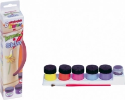 - Zestaw zawiera 6 farb akrylowych oraz pędzel