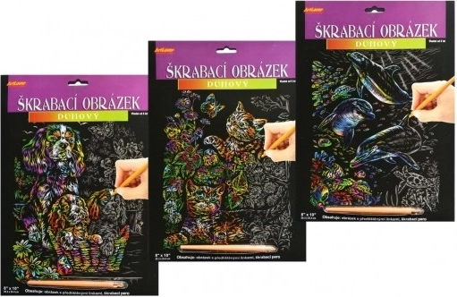 Obrazki do wydrapywania ArtLover są idealne do rozwijania kreatywności. Papier pokryty czarną warstwą skrywa piękny tęczowy efekt, który przemieni Twoje rysunki w wyjątkowe wrażenie wizualne. Prosty sposób użycia zapewnia zabawę dla wszystkich grup wiekowych: