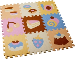 Stwórz dzieciom bezpieczny i radosny kącik dzięki kolorowej piankowej układance z motywem przysmaków. Poszczególne elementy łatwo się ze sobą zatrzaskują, można je dowolnie rozszerzać i łączyć. Mata jest miękka, przyjemna w dotyku i delikatna dla podłogi.