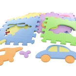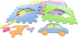 Ten zestaw kolorowych piankowych puzzli zapewnia dzieciom nie tylko wygodną i bezpieczną matę, ale także angażującą formę nauki. Wyjmowane kształty (pojazdy i inne przedmioty) wspierają małą motorykę, rozpoznawanie kształtów i kolorów oraz rozwój wyobraźni podczas układania.