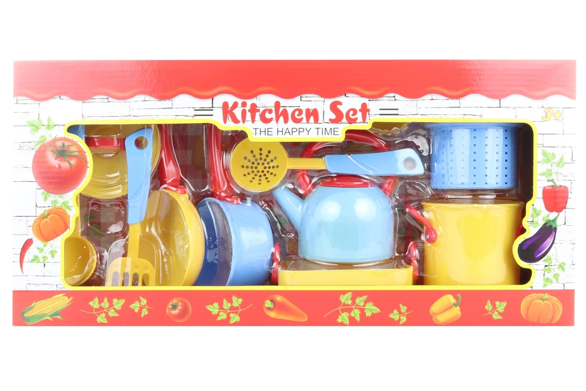 Kuchenka do zabawy będzie z tym zestawem jeszcze zabawniejsza. Zestaw plastikowych naczyń zawiera czajnik, garnek, sito, rondelek, patelnię, pokrywkę i inne akcesoria – wszystko, czego mali kucharze potrzebują do swoich pierwszych przepisów. Idealny do dziecięcych zabaw w gotowanie, rozwija wyobraźnię i motorykę małą. Lekki plastik, bezpieczne wykonanie dla dzieci oraz bogate wyposażenie ucieszą każdego małego kucharza.