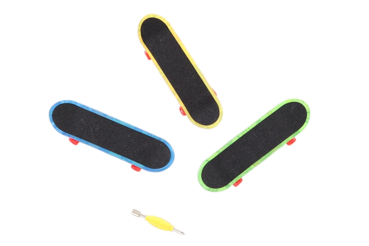 Odkryj świat fingerboardingu z zestawem trzech plastikowych palcowych deskorolek o wielkości ok. 9,5 × 3 cm. Dzięki zintegrowanemu światłu i dołączonym bateriom są gotowe do jazdy zaraz po rozpakowaniu. Kompaktowe wymiary i lekka konstrukcja umożliwiają wygodne wykonywanie trików wszędzie – w domu, w szkole i w podróży.