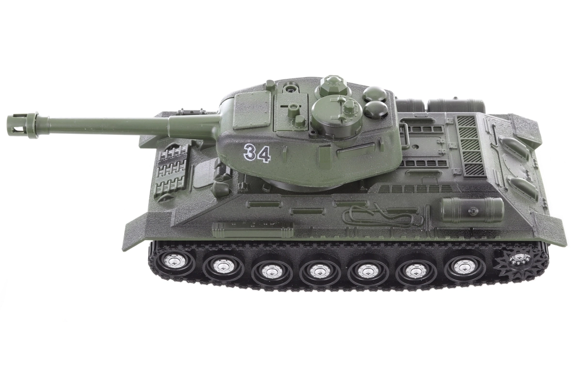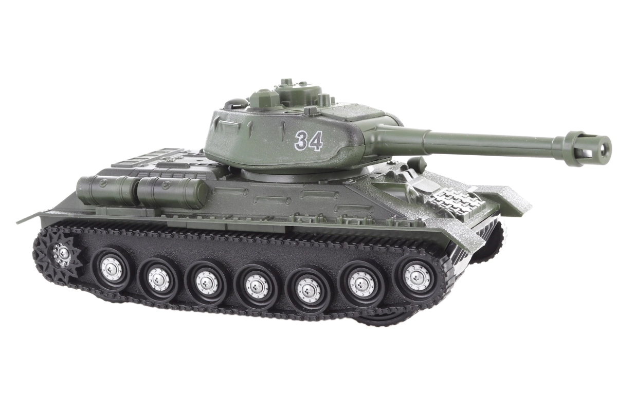 Przeżyj emocjonujące bitwy z realistycznym zielonym czołgiem w skali 1:32. Dzięki napędowi bezwładnościowemu czołg po popchnięciu płynnie rusza, a obrotowa wieża i szczegółowo wykonane podwozie z gąsienicami pobudzą wyobraźnię i zapewnią długie godziny zabawy.