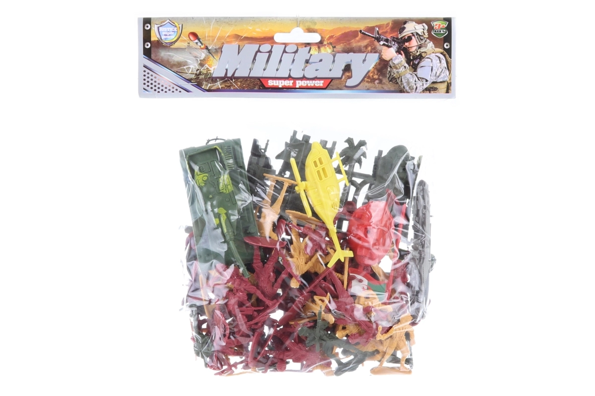 W komplecie znajdują się nie tylko figurki, ale także czołg, helikopter oraz elementy umocnień, dzięki którym dzieci łatwo stworzą własne pole bitwy. Opakowanie w praktycznym woreczku jest idealne w podróży i do wygodnego przechowywania.