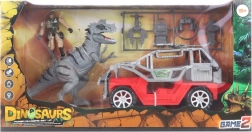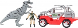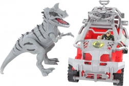 Ten zestaw zawiera szarego dinozaura, terenowe auto oraz figurkę w ubraniach wojskowych dla ostatecznego doświadczenia w grze.