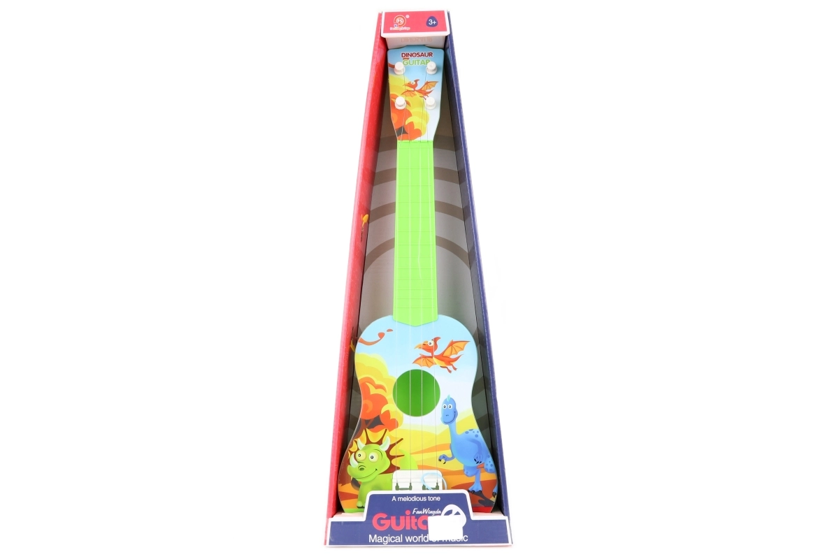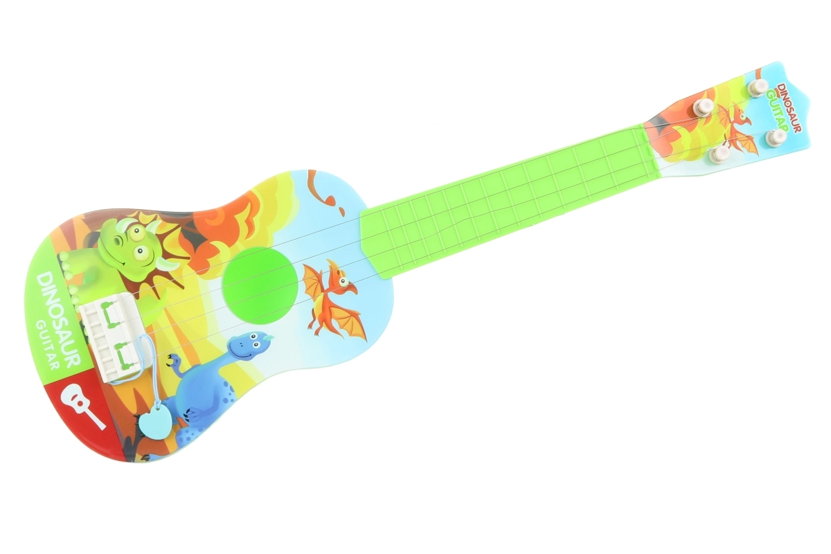 Ta dziecięca gitara z wesołymi dinozaurami to świetny pierwszy krok do świata muzyki. Dzięki kompaktowym wymiarom ok. 53 × 17 cm dobrze leży w dłoni, łatwo ją przenosić i jest idealna do gry w domu oraz w podróży. Lekki, wytrzymały plastik i bezpieczne wykonanie są stworzone dla małych rąk i początkujących.