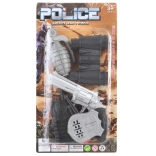 Kompletny policyjny zestaw dla małych stróżów prawa z bezpiecznymi akcesoriami do kreatywnej zabawy. Zawiera pistolet na przyssawki, 3 naboje z przyssawką, granat, krótkofalówkę, lornetkę oraz odznakę. Idealny dla dzieci od 3 lat, wykonany z wytrzymałego plastiku.