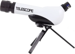 Odkryj nocne niebo z tym plastowym teleskopem dla dzieci ze stojakiem, oferującym średnicę obiektywu 60 mm, powiększenia 20×, 30× i 40× oraz łatwe ustawianie ostrości przy ogniskowej 170 mm. Idealny dla początkujących miłośników astronomii od 8 lat.