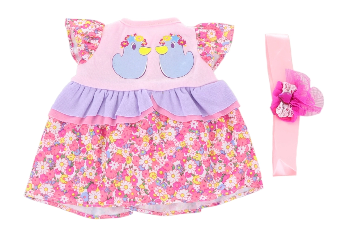 Tchnij w ulubioną lalkę nowy styl. Ta sukieneczka została zaprojektowana dla lalek o wielkości 40–45 cm i zachwyca uroczymi detalami, takimi jak falbanki, kokardki i miłe dla oka nadruki. Dzięki wygodnemu krojowi i lekkiemu zapięciu z przebieraniem poradzą sobie nawet młodsze dzieci.
