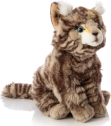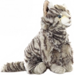 Ten pluszowy kot posiada realistyczne wzory i odcienie kolorów, które nadają mu autentyczny wygląd prawdziwego kota.
