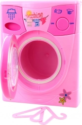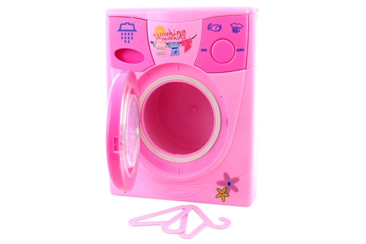 W zestawie znajdują się także 2 wieszaki, dzięki którym dzieci mogą bawić się w kompletne pranie i wieszanie ubrań. Zasilanie zapewniają 2× baterie AA (brak w zestawie), dzięki którym pralka ożywa dźwiękiem i ruchem. Wytrzymały plastikowy materiał sprawdza się w codziennej zabawie.