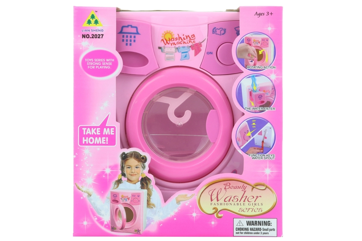 Urocza dziecięca pralka w różowym kolorze zapewnia realistyczną zabawę z wodą i dźwiękiem. Świetna dla małych gospodyń od 3 lat, zasilana 2× bateriami AA. Funkcja użycia wody, kompaktowe wymiary oraz akcesoria w zestawie gwarantują mnóstwo zabawy i rozwijają dziecięcą wyobraźnię.