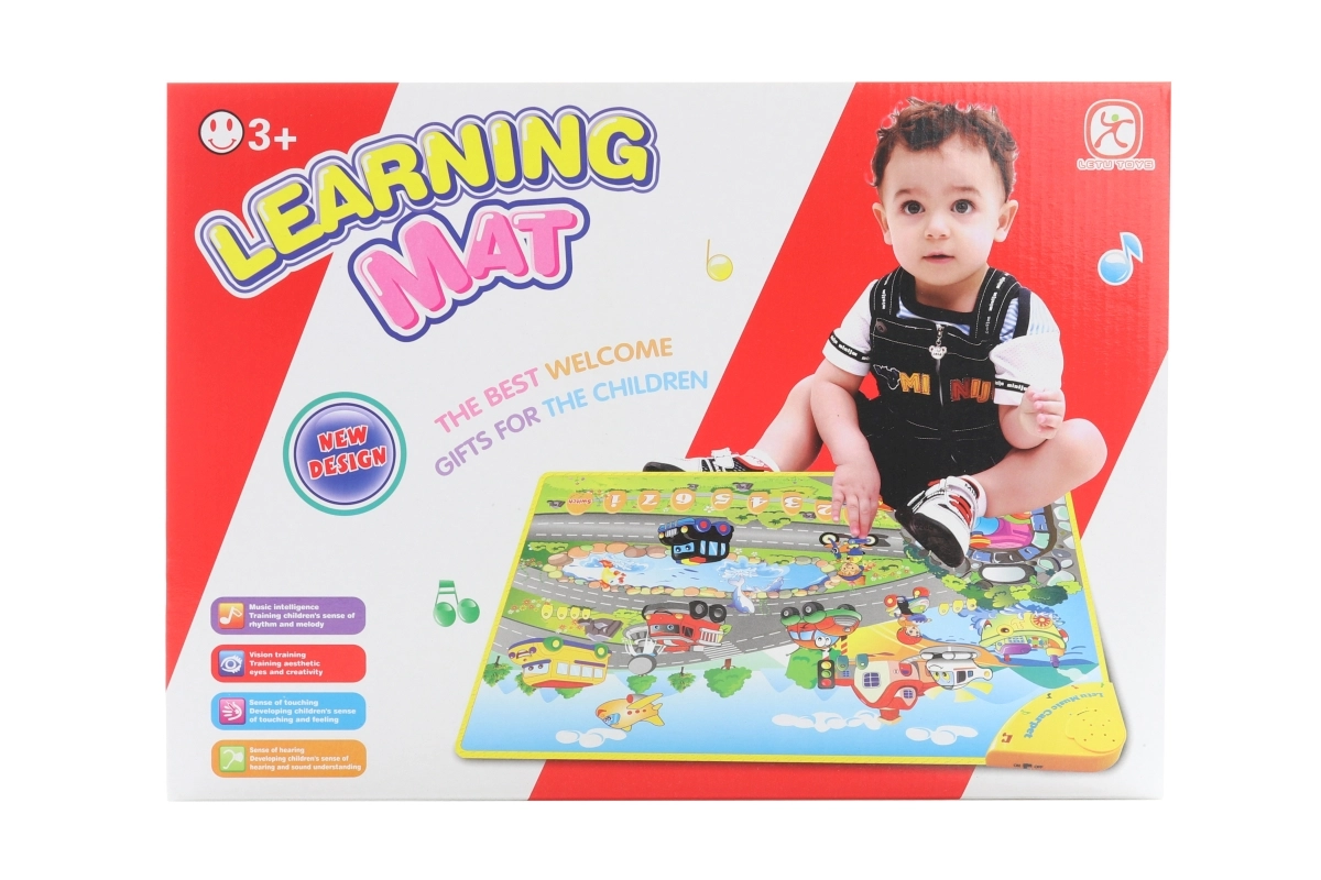 Odkryj świat dróg i kolei z tym kolorowym muzycznym dywanem, który po naciśnięciu wybranych miejsc odtwarza realistyczne dźwięki środków transportu. Dzieci w zabawny sposób uczą się rozpoznawać dźwięki, trenują koordynację ręka–oko i rozwijają wyobraźnię.