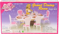 Stwórz doskonałą kolację dla lalek z kompletnym zestawem Glorie. Duży stół i sześć krzeseł zapewniają dużo miejsca dla gości, a dopracowane detale nadają zabawie realistycznego charakteru. Zestaw zaprojektowano z myślą o łatwym użytkowaniu przez dzieci i wspiera wyobraźnię, komunikację oraz motorykę małą.