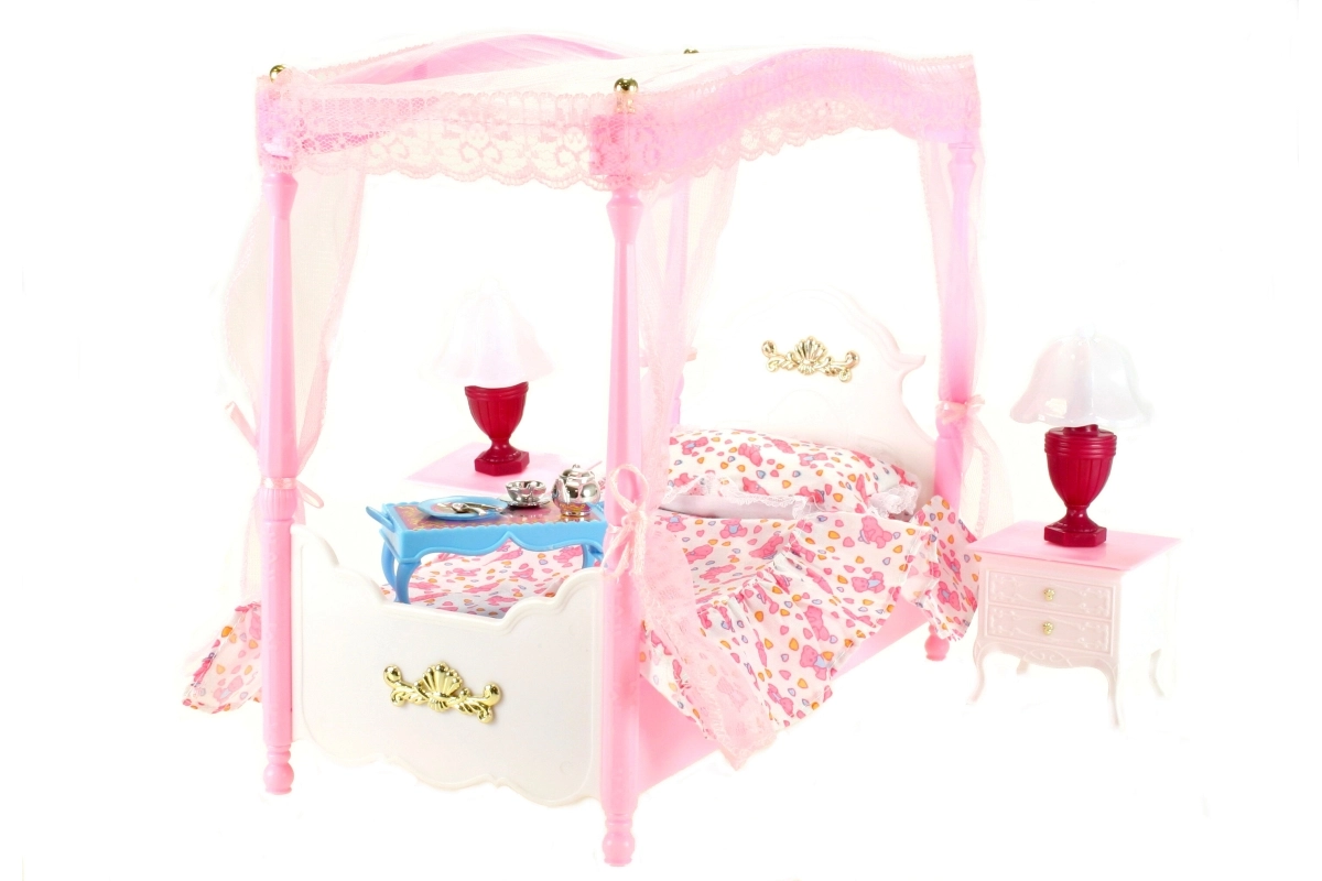 To dopracowane w szczegółach łóżko z baldachimem zamieni pokoik lalek w przytulne królestwo. Dzięki bogatym akcesoriom i funkcjonalnym lampkom dzieci stworzą wiele realistycznych scenek i będą się świetnie bawić. Wysokiej jakości plastikowe wykonanie zapewnia trwałość i łatwą pielęgnację.