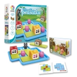 - książka zadań, ilustrowana przygoda, plansza, 3 duże elementy gry, 4 figurki