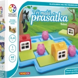 Trzy Małe Świnki to interaktywna gra, która ćwiczy logiczne myślenie dzieci i zapewnia zabawę przy budowaniu przytulnych domków i ochronie przed wilkiem.