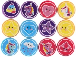 Każdy zestaw zawiera 12 różnych stempli z jednorożcami, gwiazdkami, serduszkami i chmurkami. Dzieci mogą łatwo mieszać i łączyć odbitki podczas tworzenia kartek lub ozdabiania zeszytów.