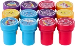 Zestaw oferuje różnorodną paletę uroczych motywów (jednorożce, gwiazdy, serduszka, chmurki itd.) w 4 wesołych kolorach. Stempelki mają kompaktową średnicę 3 cm, wygodnie mieszczą się w małej dziecięcej dłoni i rozwijają małą motorykę oraz wyobraźnię.