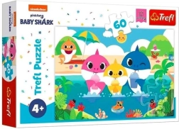 Zabawne puzzle dla dzieci z motywem Baby Shark przynoszą radość z odkrywania i układania. Zawierają 60 elementów, po ułożeniu mierzą 33 × 22 cm i są wykonane z wysokiej jakości papieru z nadrukiem ekologicznymi farbami. Świetny wybór dla małych konstruktorów od 3 lat.