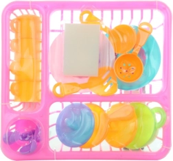 Z tym bogatym zestawem do zabawy w gotowanie dzieci będą miały pod ręką wszystko, czego potrzebują do przygotowywania „smakołyków” oraz do sprzątania po gotowaniu. Ociekacz pomaga utrzymać naczynia w porządku na swoim miejscu i uczy dzieci podstawowych nawyków dbania o ład. Lekki plastik jest przyjemny w dotyku i idealny dla małych dziecięcych rąk.