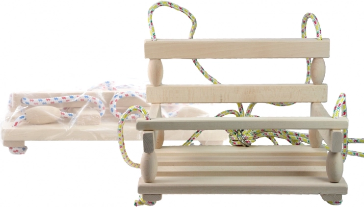 Odkryj stabilną i bezpieczną drewnianą huśtawkę w naturalnym wykończeniu dla dzieci i dorosłych o udźwigu do 80 kg. Przestronne siedzisko 40 × 30 cm, mocne kolorowe liny oraz oparcie z barierkami z... Pokaż więcej