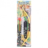 Zestaw indiański zawiera: 1x łuk ok. 50 cm, 3x strzała z futerałem ok. 26 cm, 1x nóż z futerałem ok. 20 cm. Wiek 3+